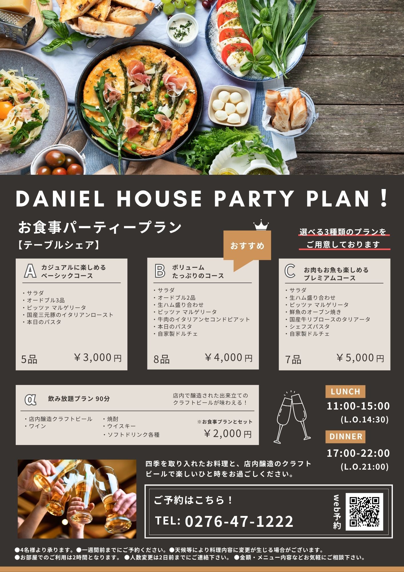 パーティープランのご案内 | 太田市の地ビールとグリル・ダニエルハウス